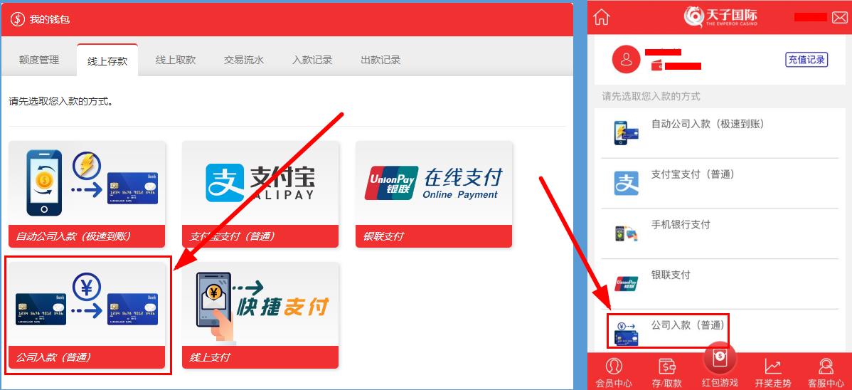 手机用户:进入存款页面,选择公司入款(普通)。